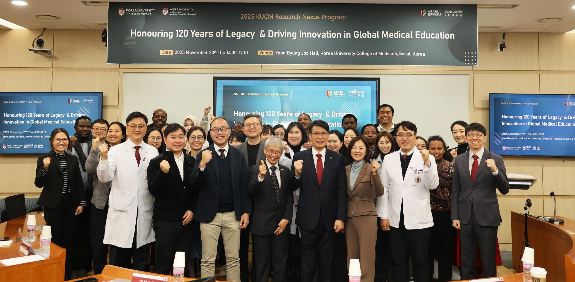 리서치 넥서스 프로그램의 일환으로 마련된 이번 행사는 ‘고려대학교 120년 유산을 기리고 글로벌 의학 교육의 혁신을 주도(Honouring 120 Years of Legacy & Driving Innovation in Global Medical Education)’를 주제로 진행됐으며, 싱가포르 국립대(NUS), 홍콩대 의대(HKUMed)가 함께해 미래형 의료 인재양성 전략과 혁신 교육 방향을 논의했다.