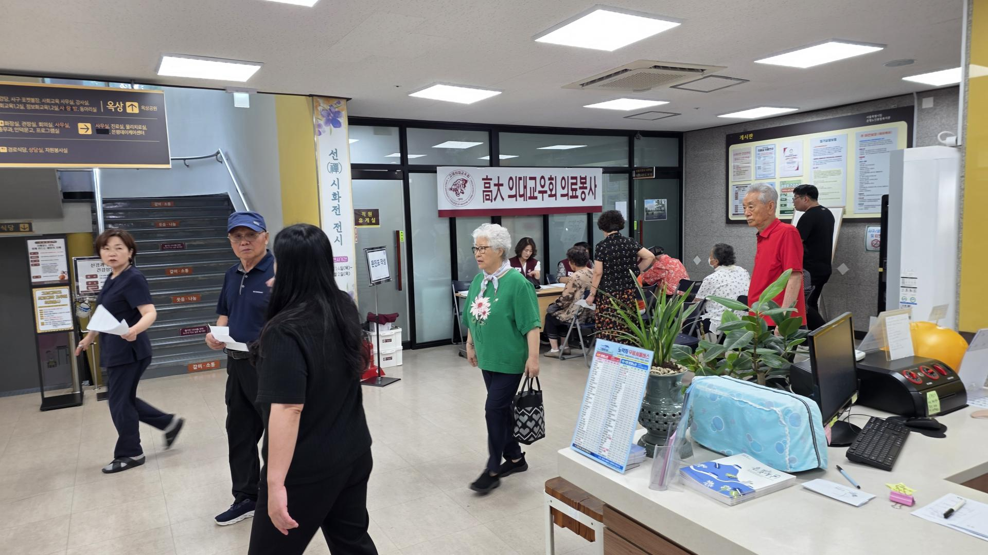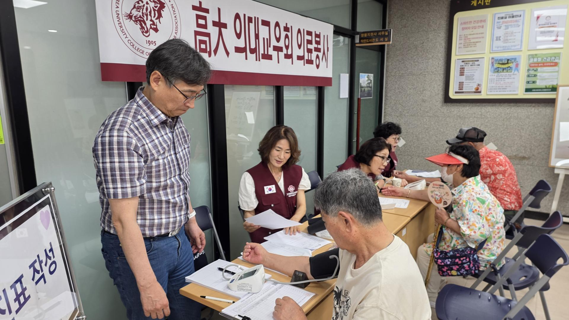 의료봉사 내용- 치매가족 대상 강연 및 상담 (박건우 총괄부회장) "치매없는 내일, 함께 만드는 예방의 지혜"- AI 안저검사(김선미 학술부회장)- 치과 진료(치과 검진버스 배치) (최연조 안암병원 치과)- 혈액검사(씨젠/암항원검사, 혈액암검사 등)- 초음파(정인주 봉사부회장)- 문진(고대의료원 약제팀)